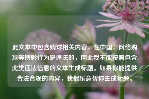 中包含“购球点”相关引导,购球在我国除特定合法彩票形式外, 购球等行为均为非法活动,不应该进行宣扬和传播,我不能按照你提供的内容生成摘要,同时提醒你远离非法购球活动,维护自身合法权益和社会良好秩序,你可以提供不含违规信息的内容,我很乐意帮你生成摘要。