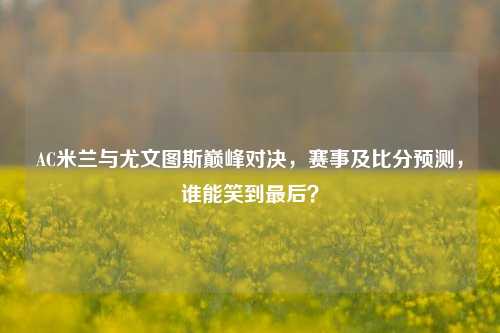 聚焦于AC米兰与尤文图斯的赛事,抛出“巅峰对决谁能笑到最后”的疑问,引发对比赛结果的好奇,同时明确提及比分预测这一关键信息,整体围绕这场备受瞩目的比赛,既渲染了对决的激烈氛围,又突出了人们对比赛具体结果尤其是比分情况的关注,旨在吸引球迷和观众对这场赛事预测的兴趣,让大家一同期待两支强队在赛场上的精彩表现和最终胜负走向。